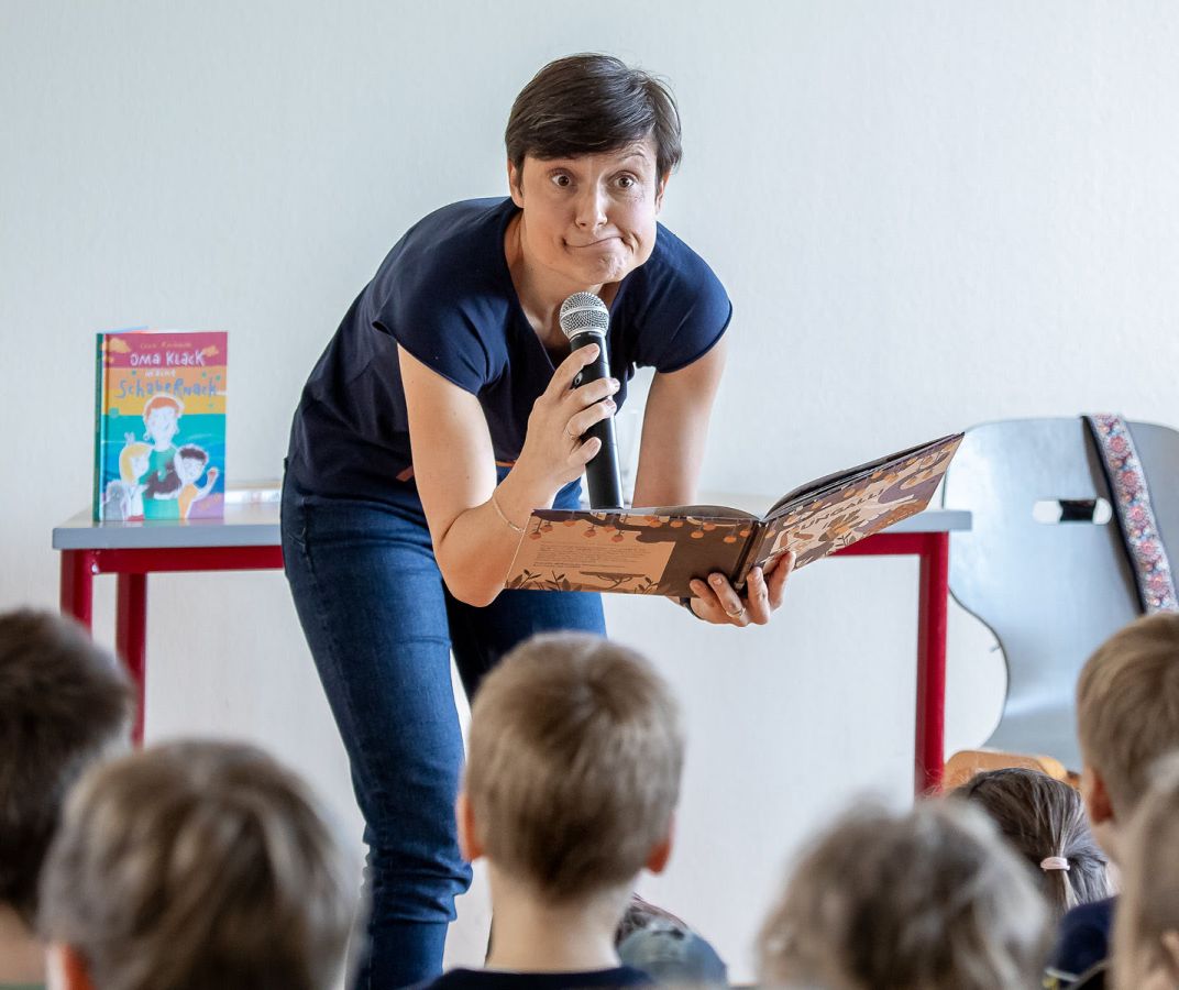 Als ausgebildete Schauspielerin und Sprecherin erwecke ich meine Bücher zum lesenden Leben. Dabei sorge ich stets für Interaktivität, denn meine Auftritte (vor Menschen jedes Alters!) sehe ich als Begegnung und im wahrsten Sinne gute Unterhaltung – mit Offenheit, Herzlichkeit und respektvoller Nähe.